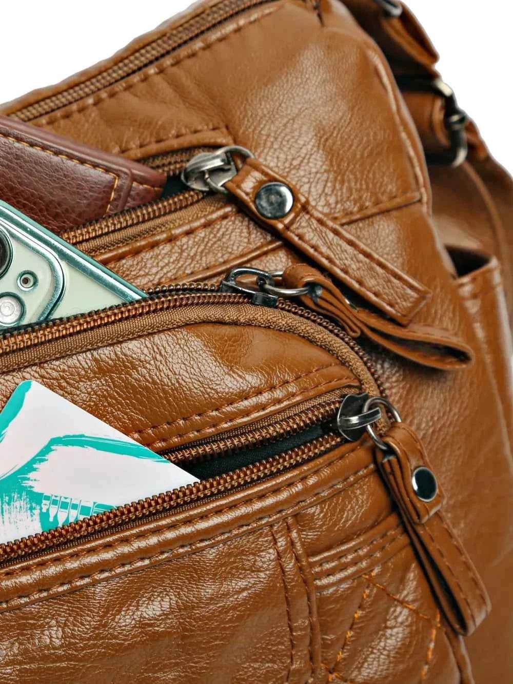 PU Leather Multi Pockets Adjustable Strap Shoulder Bag