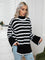 Striped Slit Turtleneck Drop Shoulder Sweater