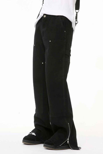 Men's Raw Hem Bootcut Jeans with Zip-Up Sides