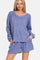 Zenana V-Neck Long Sleeve Ribbed Top and Shorts Set